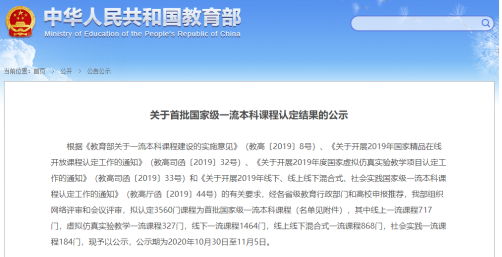 近日,教育部发布了《关于首批国家级一流本科课程认定结果的公示》,我院Mark Olson教授主讲的《药物科学基础化学》获批立项国家级一流本科课程。
