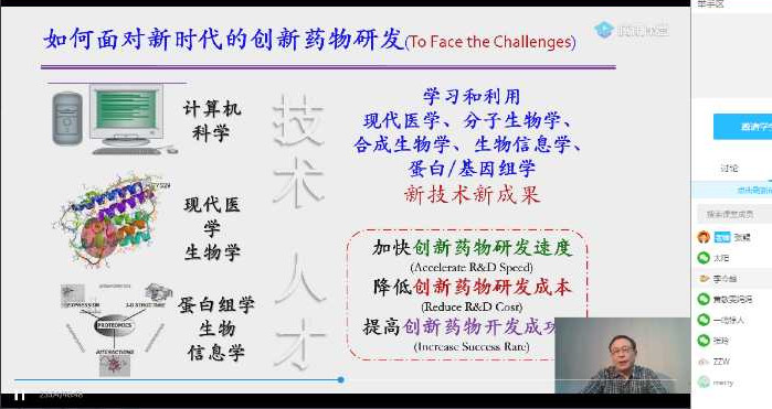 在靶向药物的介绍中,高教授就什么是靶向药物、如何借助计算机设计和筛选靶向药物、计算机辅助药物设计的好处进行了深入浅出的讲述。计算机辅助药物设计也因其精准、快速、高效的特点受到青睐。高教授总结道,创新药的研发归根结底还是技术驱动创新,运用老药新用技术快速开发自主产权新药,并结合最新研究成果进行了实例介绍。