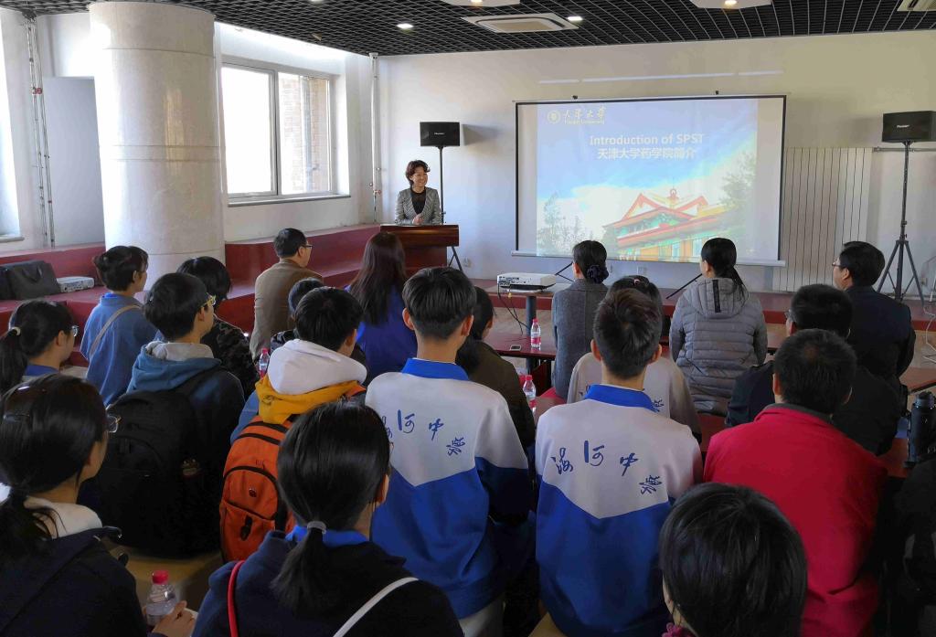王秀文书记在讲话中首先表达了对我院师生的感谢。紧接着,她介绍了海河中学与天津大学的发展历史,并表明两校同根同源、血脉相连的历史关系。她进一步指出,海河中学和天津大学志同道合,始终不忘北洋兴学救国之初衷,铭记为国共育英才之教育梦想。