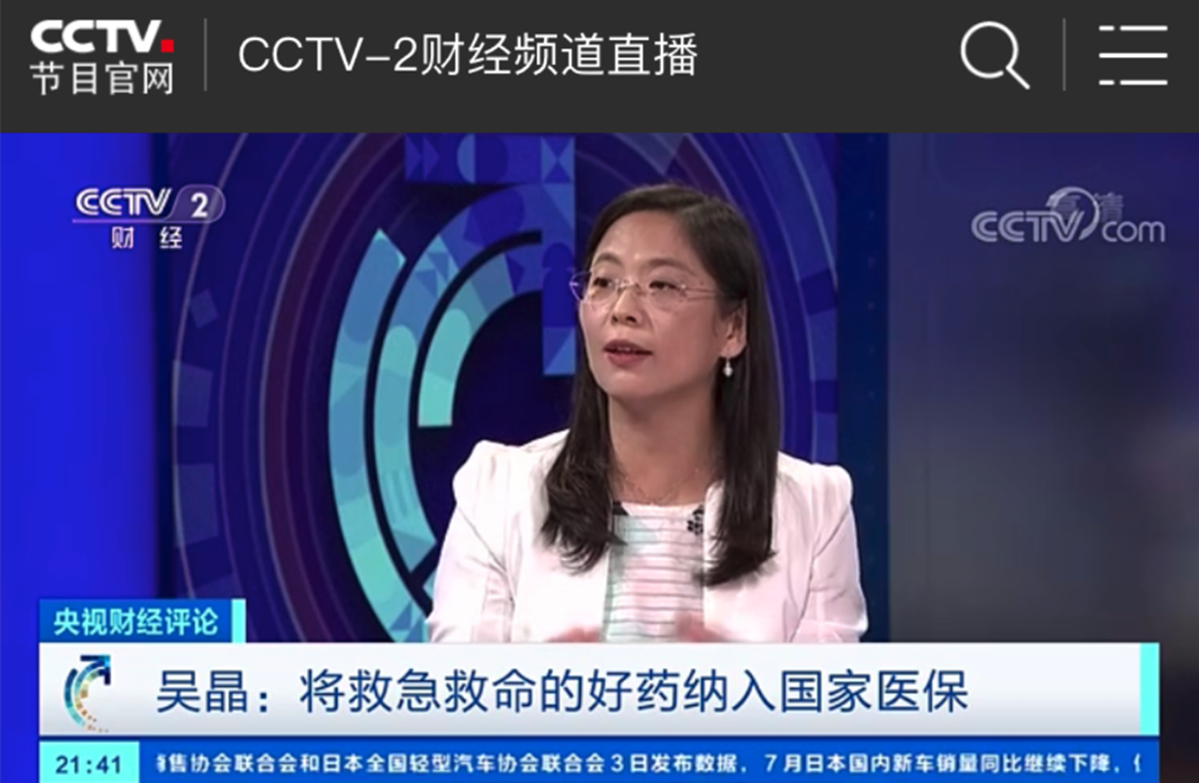 2020年8月4日晚,我院卫生事业与药事管理专业教授、中国药学会药物经济学专业委员会副主任委员吴晶老师作为特邀嘉宾,参加了CCTV-2财经频道的直播节目《央视财经评论》,就“医保目录调整,药品报销将迎来哪些变化?”这一社会热点话题,与央视主持人张琳、经济评论员万喆进行了深入探讨。