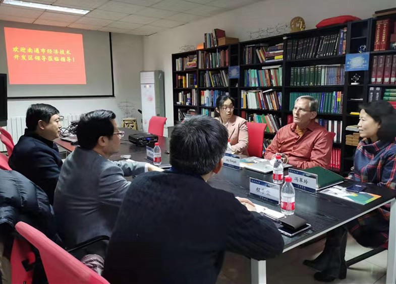 1月15日下午,南通市经济技术开发区副主任陈强一行3人到访天津大学药学院,考察交流药学院国际化试点建设、科技成果转化等情况,药学院院长Jay Siegel、党委书记冯翠玲、副院长杜云飞、周艳接待来宾并进行座谈。