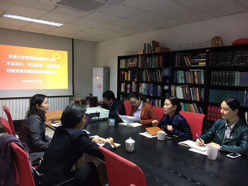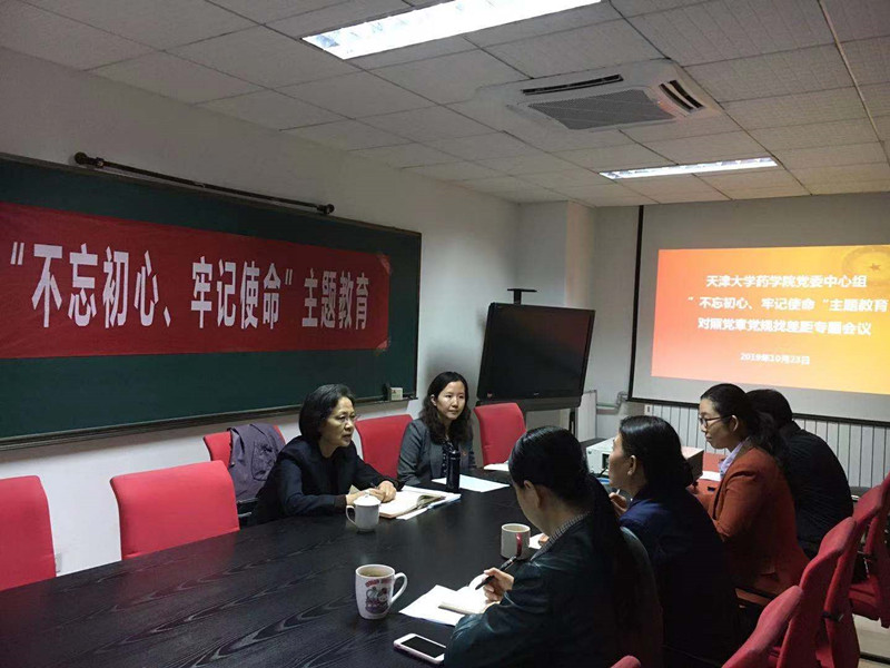 2019年10月23日,药学院党委理论学习中心组在卫津路校区24楼A202会议室召开“不忘初心、牢记使命”主题教育对照党章党规找差距专题会议。天津大学主题教育第四指导组组长常辽华老师到会指导,学院党委理论学习中心组成员出席会议。会议由党委书记冯翠玲主持。
