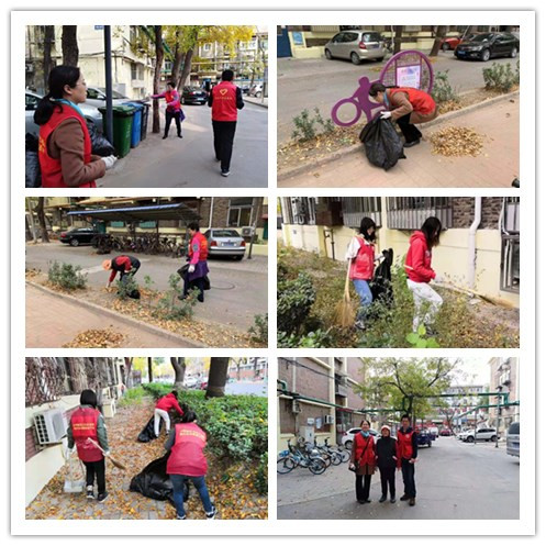 目前天大六村社区正处于落叶季,物业公司扫保人数有限,药学院党委及时派出师生党员志愿者配合街干部和社区工作人员一起开展环境清整工作。师生党员志愿者在六村社区,有的拿清扫工具,有的拿垃圾袋,捡拾小区道路两边、小区广场和绿地里的垃圾和落叶,清除小广告。