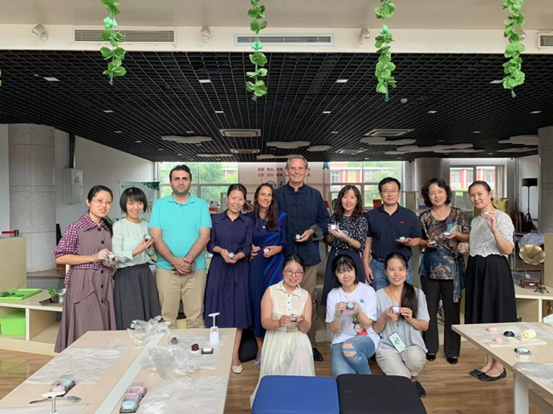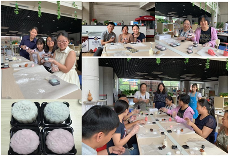 9月11日中午,药学院工会联合甜蜜蜜DIY蛋糕店组织“药与你团圆 甜蜜满中秋”冰皮月饼制作体验活动。中外教师一起亲手制作印有“天大”“药学院”“SPST”冰皮月饼,在现场分享快乐和甜蜜,营造了浓浓的家文化。