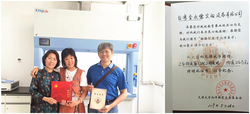 为了支持药学院的国际化建设,台湾金永德实验设备有限公司于2019年5月24日向我校药学院捐赠了两台“斜氣簾”排气柜。台湾金永德实验设备有限公司李文顺总经理、孙效娴经理携三名工程师在24楼仪器分析平台完成了这两台排气柜的安装调试。药学院党委书记冯翠玲、副院长杜云飞代表学校接受了捐赠。