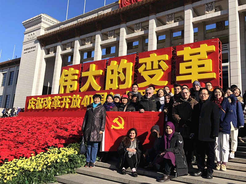 往返北京的途中,师生们举行了别开生面的“大篷车论坛”,大家分享了自己对改革开放的理解与感触。冯翠玲书记结合亲身经历讲述了改革开放这一路走来的艰辛及改革开放四十年所发生的巨大变化,同时还为中外教师讲解了中国特色社会主义道路的建设历程以及在中国特色社会主义新时代里中国的治国理念和大国担当。