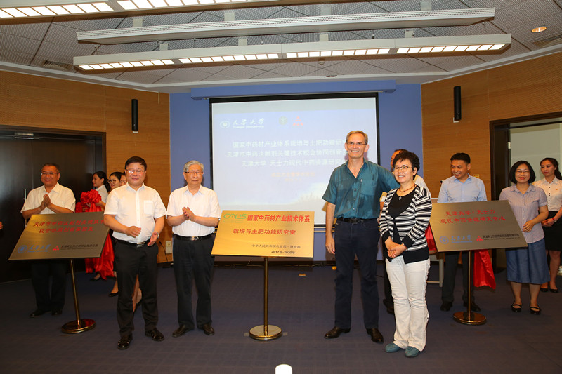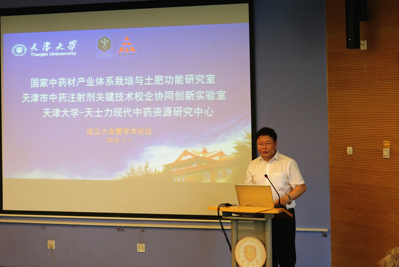 2018年7月1日,国家中药材产业体系栽培与土肥功能研究室、天津市中药注射剂关键技术校企协同创新实验室、天津大学-天士力现代中药资源研究中心成立大会及揭牌仪式在天津大学(卫津路校区)会议楼第七会议室隆重举行。应邀出席的嘉宾有:天津药物研究院名誉院长刘昌孝院士,国家中药材产业体系办公室主任、国家中药资源中心副主任郭兰萍研究员,天津科委基础处金双龙处长、丁瑞卿主任,天士力医药集团股份有限公司朱永宏总经理、天津天士力现代中药资源有限公司张学敏总经理、天津天士力之骄药业有限公司鞠爱春总经理,农业部国家中药材产业体系的研究室主任、岗位科学家及试验站站长10多人,天士力医药集团代表20多人,天津大学元英进副校长,天津大学科研院崔振平常务副院长,天津大学药学院Jay Siegel 院长、冯翠玲书记、周艳副院长、Kim Baldridge副院长和Robert Borris副院长,天津大学药学院学科带头人及学生代表出席50多人。三个中心主任高文远教授主持了揭牌仪式。