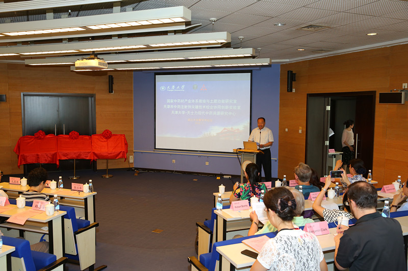 揭牌仪式结束后,天津大学药学院Jay Siegel院长结合国际生物学和药学发展趋势,详细介绍了药学院的国际化健康平台的发展规划。国家中药材产业体系办公室主任、国家中药资源中心副主任郭兰萍研究员就“生态农业-中药农业的必由之路”做了精彩的学术报告。