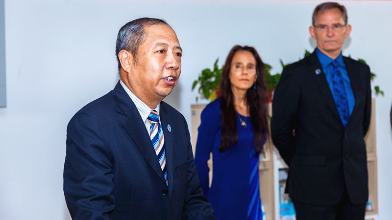天津大学校长助理张力新首先致辞。他说,此次南开区红十字会与天津大学药学院的培训基地共建,可谓强强联合、相得益彰。天津大学真诚地希望未来能够立足天津大学药学院这样的优质教学科研平台,深入学习贯彻党的十九大精神,与红十字会开展一系列诸如应急救护培训基地这样利国利民的合作项目,助力健康中国战略的实施,为国家富强、民族振兴、人民幸福做出贡献。
