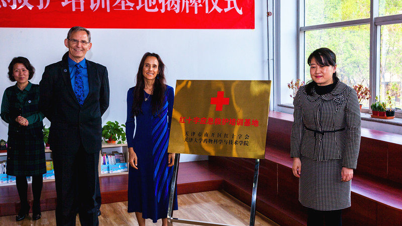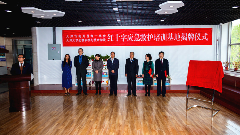 活动中,南开区红十字会常务副会长王建华和天津大学药学院党委书记冯翠玲共同签署并交换了双方共建红十字应急救护培训基地的协议;南开区政府副区长、区红十字会会长沙红女士和天津大学药学院院长Jay Siegel教授共同为应急救护培训基地揭牌。