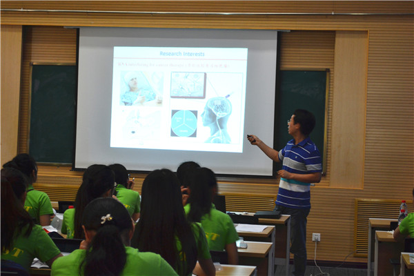入营首日举办了夏令营欢迎活动,张玲副院长对各位营员表达了学院诚挚的欢迎,并对药学院自建院以来的发展历史、未来五到十年的发展规划以及实施国际化战略以来在教学改革等方面取得的成绩做了简单介绍。为了帮助营员们克服初到天大彼此之间的生疏,学院领导与同学们亲切交谈并共同完成破冰团体活动,现场气氛轻松活泼。