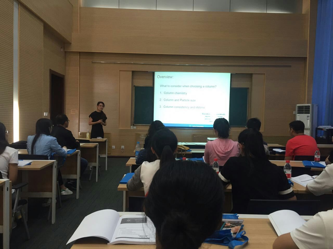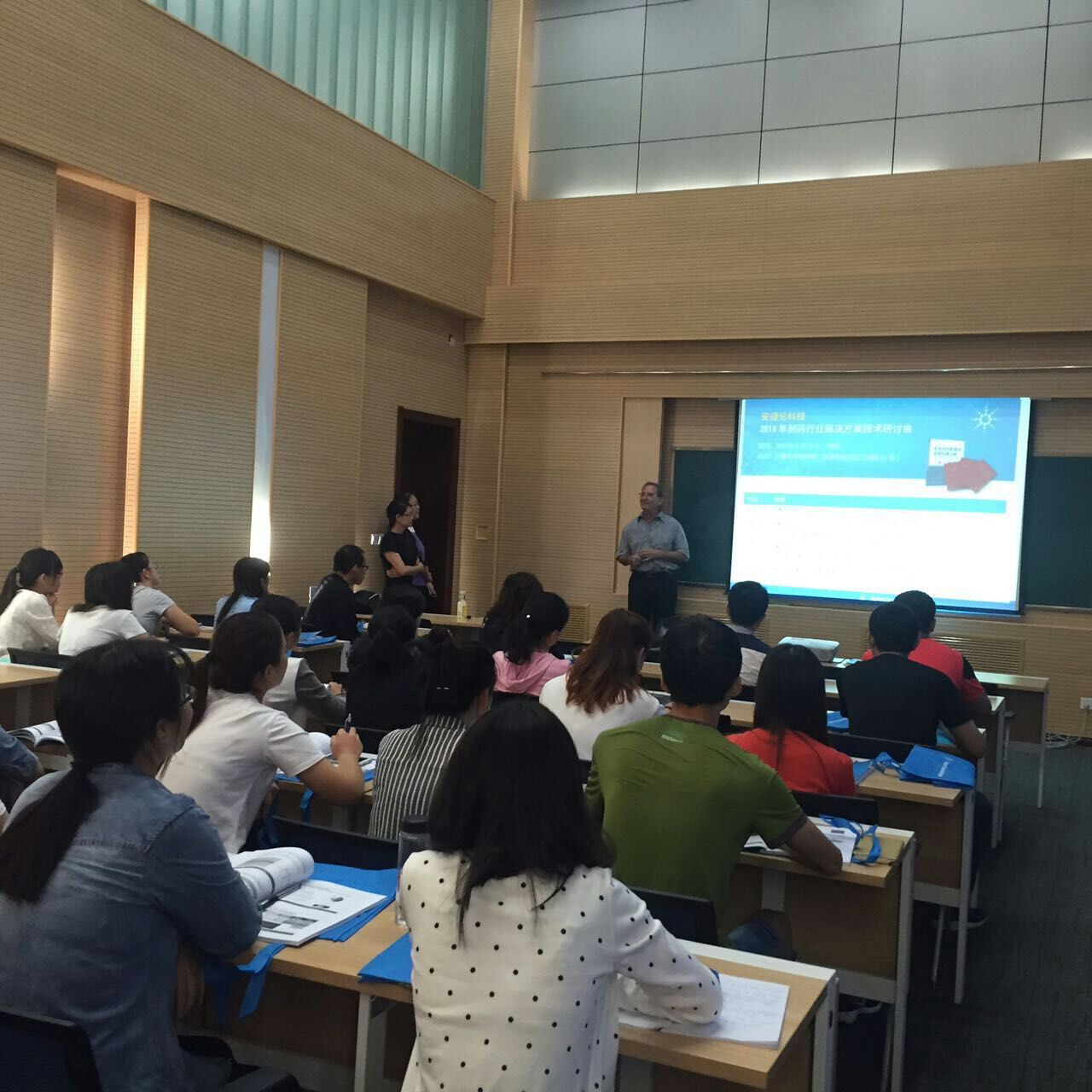 为了进一步加强仪器使用培训,让师生们第一时间掌握仪器设备使用和维护的最新前沿动态和日常使用的注意事项,2016年9月22日,天津大学健康科学平台与安捷伦公司共同举办“2016 年制药行业解决方案技术研讨会”。研讨会期间来自天津大学、天津中医药大学、天津医科大学、南开大学等高校师生以及天津市医药企业代表70余人聆听了与会专家题为《色谱柱的选择》、《LC-MS 在药学及相关领域的应用》、《ICP-MS 原子光谱在药学及相关领域的应用》、《液相及气相色谱仪的日常维护保养》的精彩报告和讲解,研讨会期间,参会人员和仪器工程师就先进的分析方法和仪器设备的养护方案等热点问题展开热烈讨论。