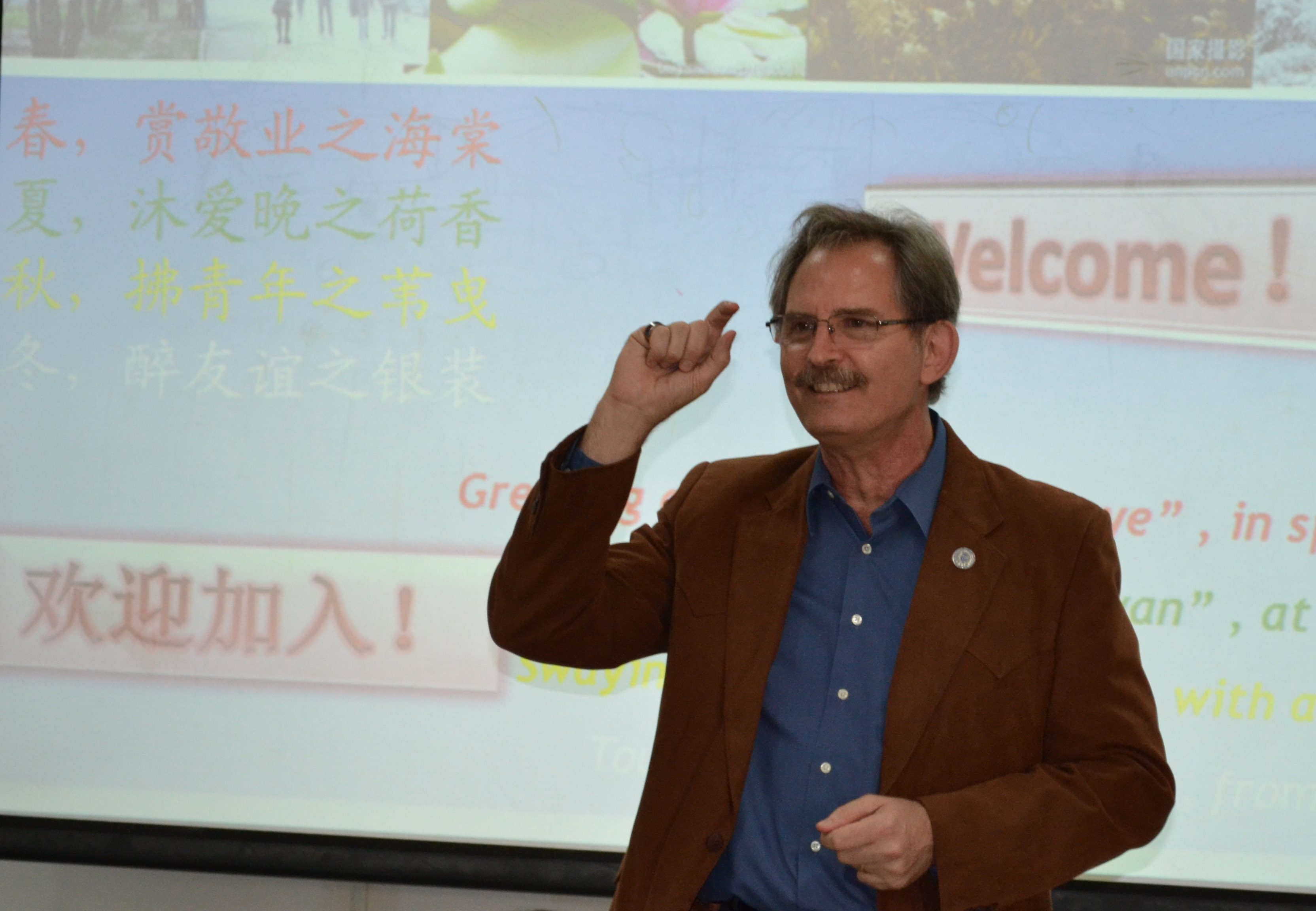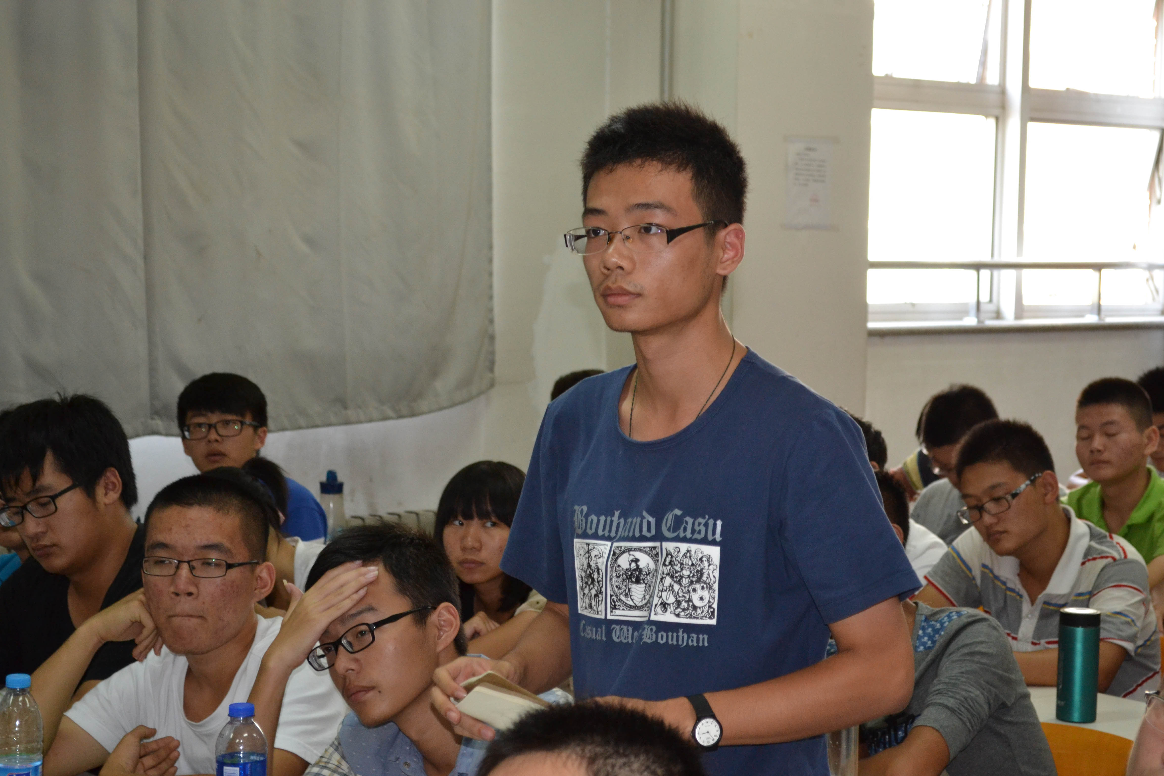 在提问环节,2014级本科生董严斌同学向Jay Siegel院长问道,作为一名外籍院长,您认为我院最大的特色是什么。Jay Siegel的回答简洁有力,他指出:药学院有最国际化的教学理念,有最先进的实验设备与技术,有更强的与国际接轨的交流能力。同学们向Jay Siegel咨询如何尽快提升自身英语水平,Jay Siegel 幽默地用自己学中文的事例来教导学生们要多说,多听,勇于开口,多听广播、新闻、音乐等能锻炼英语听力能力的音频。紧接着,2014级本科生李吉东同学也表达了自己的看法,他认为中国大学生缺少创新能力,过多拘泥于课本,向Jay Siegel咨询应如何打破这种现状。Jay Siegel举出了一个简单的例子:一个同样的塑料瓶,中国学生可能会想“它是什么”,而外国的学生会问“它是由什么做的”。同样的事物、不同的思考角度,这折射出了中国学生思维大多禁锢于书本。Jay Siegel表示希望看到学生能保持一个活跃的思维,不仅仅局限于书本和课堂。