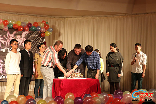 在中场的休息时间,是药学院的集体生日环节——将所有在十月过生日的同学邀请到台上来,与大家共度生日。舞台、灯光、歌声,让在场的每个人都沐浴在暖暖的爱中。同学们与老师们一起走到桌前切蛋糕,共同祝福药学院的明天越来越好。张玲副院长也即兴献上钢琴曲《茉莉花》一首。 最后,深受学生欢迎的赵亚林老师为大家带来一首《千千阙歌》,深情又具有磁性的嗓音仿佛能穿通人的心灵,让人不自觉的跟着节奏摆动起来。 在歌声中,药学院2014年迎新晚会走进了尾声。 飞扬的歌声,吟唱难忘的时光,凝聚心头不变的情节。熟悉的旋律,演绎时代的激越,回荡情怀不改的真切。今夜,星光璀璨。今夜,心潮澎湃。