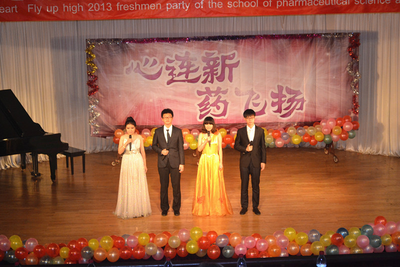 2013年10月26日晚6时30分,药学院2013年迎新晚会在大学生活动中心一层报告厅拉开帷幕。药学院院长Jay Siegel、党总支书记冯翠玲、副院长张玲等出席了晚会,中医药大学、医科大学以及许多校级社团的主要负责人观看了演出。