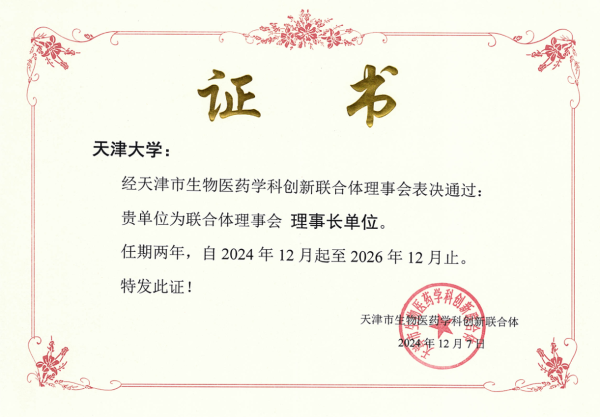近日,天津市生物医药学科创新联合体(以下简称“联合体”)第三次理事会成功举办。为进一步完善联合体的规范化管理,根据《天津市生物医药学科创新联合体章程》相关要求,经联合体各理事单位代表表决后,天津大学医学部副主任、药物科学与技术学院院长刘秀云教授当选新一届天津市生物医药学科创新联合体理事会理事长,天津大学当选联合体理事长单位,医学部药物科学与技术学院作为联合体理事会秘书处单位,联合体副理事长单位共计16家,任期为2024年12月-2026年12月。
