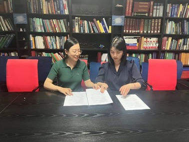 李楠首先对商柳燕一行的到来表示热烈欢迎,随后她从学院的历史沿革、人才培养、学科建设、师资队伍、毕业生情况等方面进行详细介绍。商柳燕对学院的综合实力给予肯定和赞扬,随后她主要从公司发展历程、研发投入、岗位需求等方面展开介绍。双方就人才培养、产学研合作、毕业生就业、高端培训等方面进行了深入的探讨,经充分协商,秉持“优势互补、资源共享、互惠双赢、共同发展 ”的理念和“育人为本 ”的原则,双方签订实践教学基地共建协议。