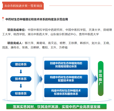 近日,《北京市人民政府关于2022年度北京市科学技术奖励的决定》发布,由中国中医科学院中药研究所郭兰萍研究员主持完成的“中药材生态种植理论和技术体系的构建及示范应用”荣获北京市科技进步一等奖,我院中药学方向带头人,国家中药材产业技术体系岗位科学家高文远教授作为第三完成人参与了此项工作,天津大学是第三完成单位。