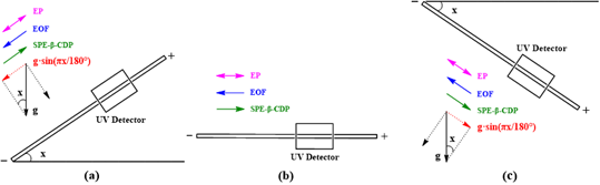 Fig. 1 The force analysis diagram of chiral drugs at 0o-90o (a), 0o (b) and -90o-0o (c) based on a novel AGM-CE and SPE-β-CDP as chiral selector