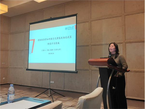 “药物经济学助力医药医保政策决策”学术研讨会由天津市药学会药物经济学专业委员会副主任委员、天津市儿童医院药剂科孙燕燕主任主持,天津市药学会药物经济学专业委员会主任委员、天津大学药物科学与技术学院吴晶教授就“药物经济学如何助力天津医改相关政策的设计与实施”做主题报告。