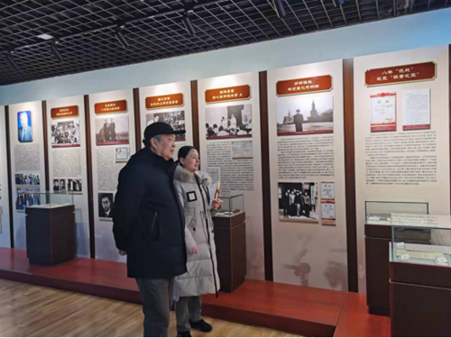 党课开始前,汪曣教授参观“‘大爱沈沈祥万家’沈家祥院士生平事迹红色展览”。
