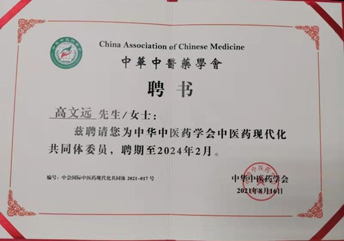 2021年8月16日,天士力医药集团股份有限公司召开“创新中药关键技术国家重点实验室”2021年学术委员会会议,药学院中药学学科带头人、国家中药材产业技术体系岗位科学家高文远教授当选为“创新中药关键技术国家重点实验室”第二届学术委员会委员和中华中医药学会中医药现代化共同体委员。