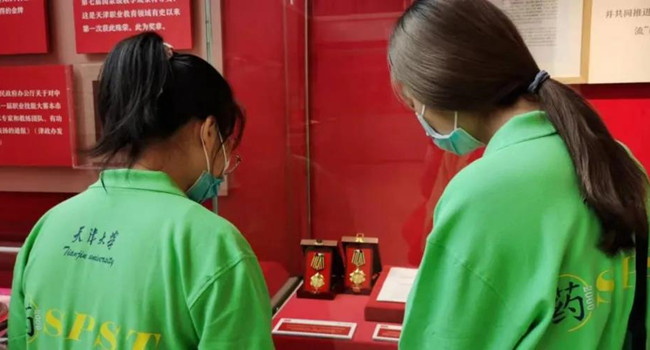 在新时代系列展品中,同学们也惊喜地发现了天大药学人的“专属记忆”,在天津大学药学院原院长Jay Siegel和药学院顾问院长、天津大学超算中心主任Kim Baldridge教授的中国政府友谊奖奖章面前,同学们深受鼓舞,拼搏创新的奋斗精神在一代代药学人中传承。