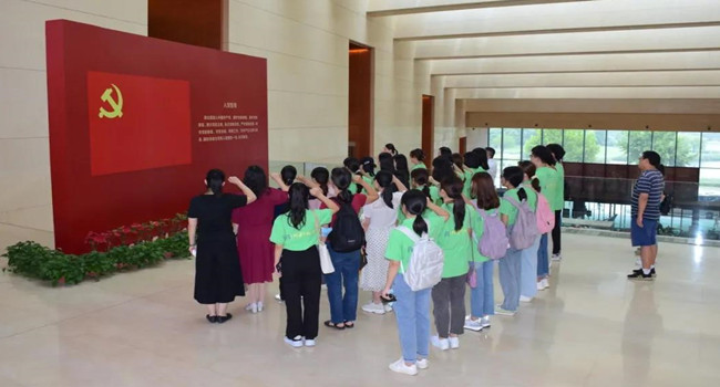 参观结束后,在学院党委副书记张玲老师领誓下,广大师生党员怀着庄重的心情,举起右手,庄严宣誓。党员们坚定的面孔和激昂的誓言,宣示了对共产党人所担负的责任义不容辞的决心,宣誓回响在党徽下,奋斗的初心将在心中薪火相传。