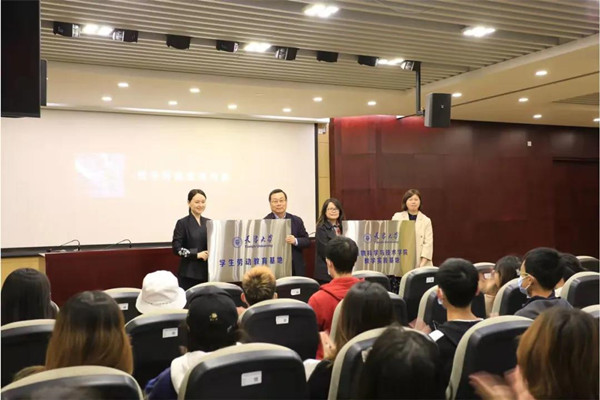 随后,天津泰达绿化科技集团董事长张清和天津大学药学院党委副书记张玲分别代表双方进行授牌仪式,天津大学学生劳动教育基地和天津大学药学院教学实践基地在大家的掌声中完成交接。